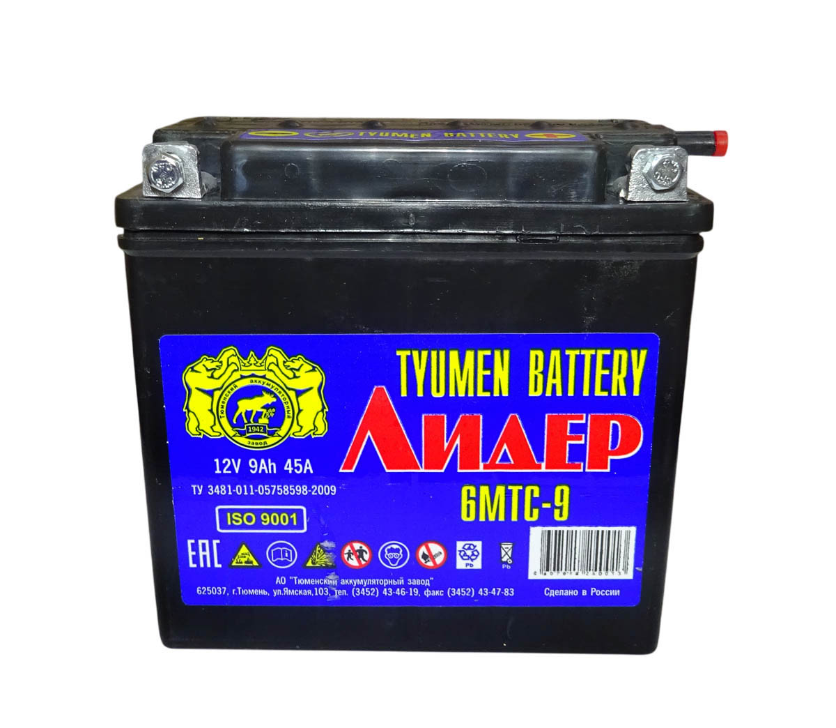 Аккумулятор 12В 9 А/ч, г.Тюмень Лидер (6МТС-9) под болт(140х75х135) обрат. пол., Кислот. Сухозарядж в интернет-магазине moto18.ru
