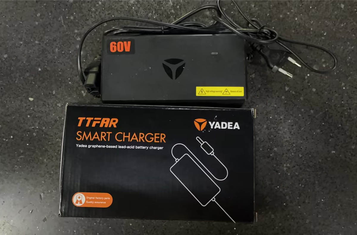 Мопед электрический Yadea Sumai это легкий мопед, массой 48 кг. Электриеский мопед SUMAI производится самым крупным в мире на сегодяшний день производителем электрических мопедов и скутеров - компанией YADEA. По сравнению с конструкцией скутера, например, YADEA M6, мопед еще легче и компактнее, ноги водителя здесь располагаются не на полике, как у скутера, а на откидных (складывающихся) подножках, как у мопедов. Батарейный отчес располагается под поликом, как обычной. В комплекте поставки идут 5 штук графеновых фирменных батарей YADEA, типа 6-DZF-23. Их можно установить самостоятельно, или вынуть, например на зимнее хранение из мопеда. Количество циклов перезарядки такой батареи - около 1500.Батарея - 60V23A,5 штук графеновых (кислотных) батарей Yadea типа 6-DZF-23