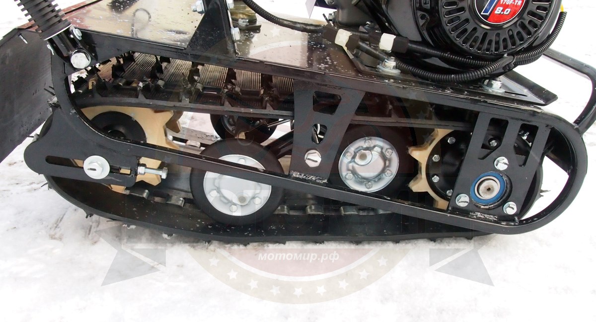 Из импортных комплектующих применяются проверенные за много лет и наиболее распространенные в России двигатели LIFAN. Для двигателей LIFAN легко найти запчасти на рынке, в большинстве случаев запчасти не взаимозаменяемые с другими китайскими двигателями. Есть модификации с двигателями ZONGSHEN и MAGNUM, которые не уступают по качеству LIFAN, но чуть более доступны по цене. В основном же применяются российские комплектующие - вариатор и детали трансмиссии - г. Рыбинск, гусеница - г. Курск, рама и прочие корпусные детали, коробка реверса, лыжи - ИжТехМаш, г. Ижевск. В трансмиссии используются более дорогие приводные цепи - производства Даугавпилс (https://ru.wikipedia.org/wiki/DITTON), завод производит цепи с 1949 года и они превосходят по качеству китайские и российские аналоги. В целом, в конструкции использованы широко доступные на рынке комплектующие, поэтому найти при необходимости нужную запчасть не составит особого труда. В частности, любые запчасти вы можете приобрести в нашем магазине.