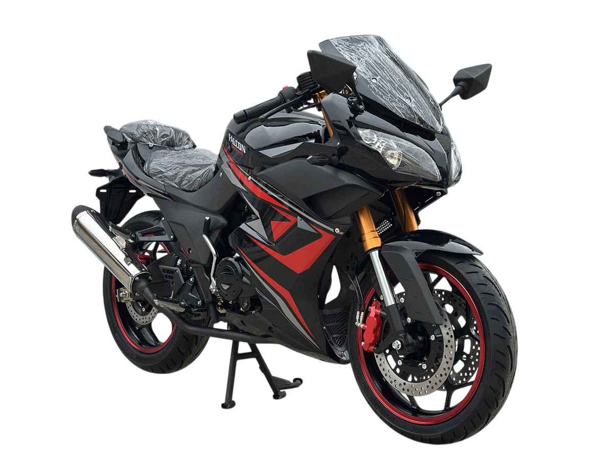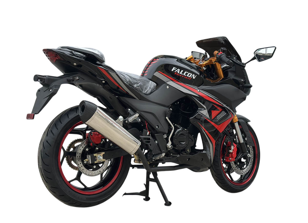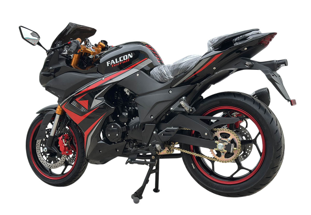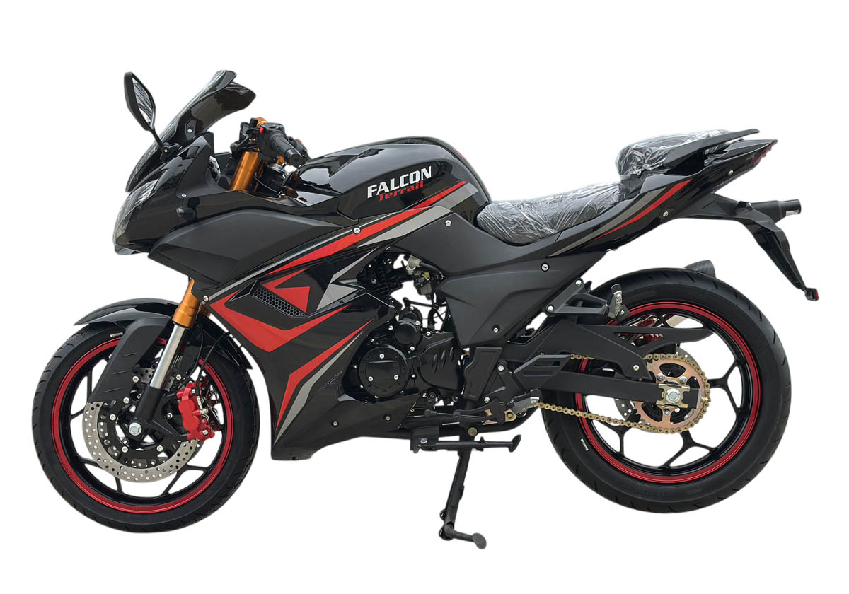 О мотоцикле Falcon TerrailУ нас в продаже есть два мотоцикла конструкции типа "спорт", внешне эти мотоциклы имеют типичный для дорожных мотоциклов спортивного класса пластиковый обвес. Эти мотоциклы не являются "спортами" в полноценном смысле этого слова, к которым можно отнести такие популярные модели как ямаха R-1 и R-6 или Kawasaki Ninja. Но в тоже время они вполне презентабельны и для начинающего мотолюбителя, которых хочет поездить на мотоцикле типа "спорт", с характерной конструкцией и внешним видом, такие модели как Falcon вполне подходят. В продаже у нас есть две модели Falcon Speedfire и Falcon Terrail они несколько отличаются обвесом и тем, что у Falcon Speedfire два глушителя, соответственно у Falcon Terrail один. Другими особенностями этих моделей является то, что эти модели очень популярны и продаются уже достаточно долгое время и хорошо себя зарекомендовали, по своим характеристикам. В отличие от спортивных мотоциклов, в этих моделях спецификация более адаптирована для российского рынка, применяется карбюраторный двигатель объемом 250см3 с кикстартером, это требования именно для массового российского рынка. Что касается геометрии мотоцикла, она вполне сопоставима с геометрией дорожного спортивного мотоцикла, об этом говорит характерная посадка, подножки смещены к заднему колесу и водитель условно "ложится" на бензобак, это нужно, чтобы снизить аэродинамическое сопротивление. В остальном конструкция этого мотоцикла также типична для "спортов", что касается рулевой колонки, здесь используется конструкция типа клипоны, также имеются регулируемые рычаги тормоза и сцепления, двойные дисковые тормоза, все это характерно для дорожных мотоциклов класса "спорт". Мотоцикл Falcon можно рекомендовать для начинающих мотолюбителей, которые хотят попробовать недорогой мотоцикл класса "спорт", этот мотоцикл имеет внешний вид "спорта" и вполне достойные технические характеристики для спортивного мотоцикла начального уровня.