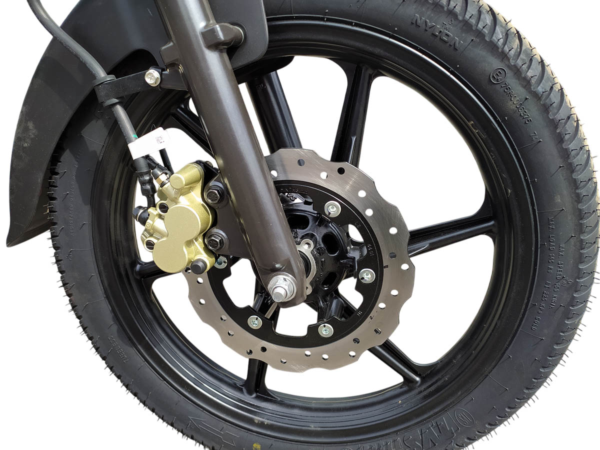 Передний тормоз - дисковый гидравлический, диаметр диска 240 мм. Задний тормоз - барабанный.