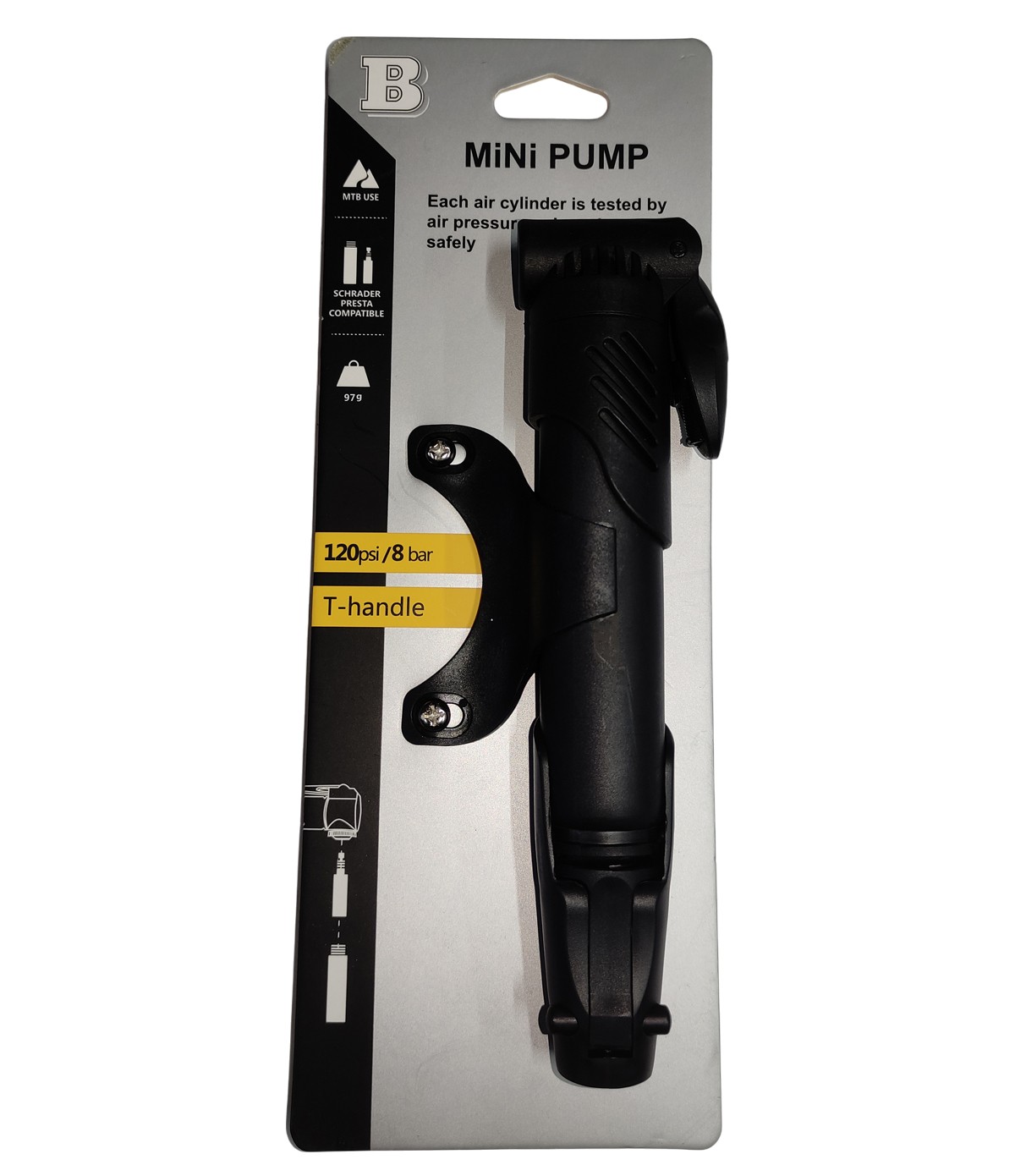 Насос BM-2523 (BOMB) вело с адаптером Presta и Schrader, маск.давление 120 psi/8 bar в интернет-магазине moto18.ru