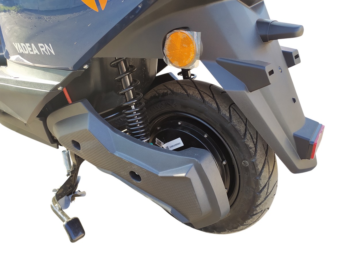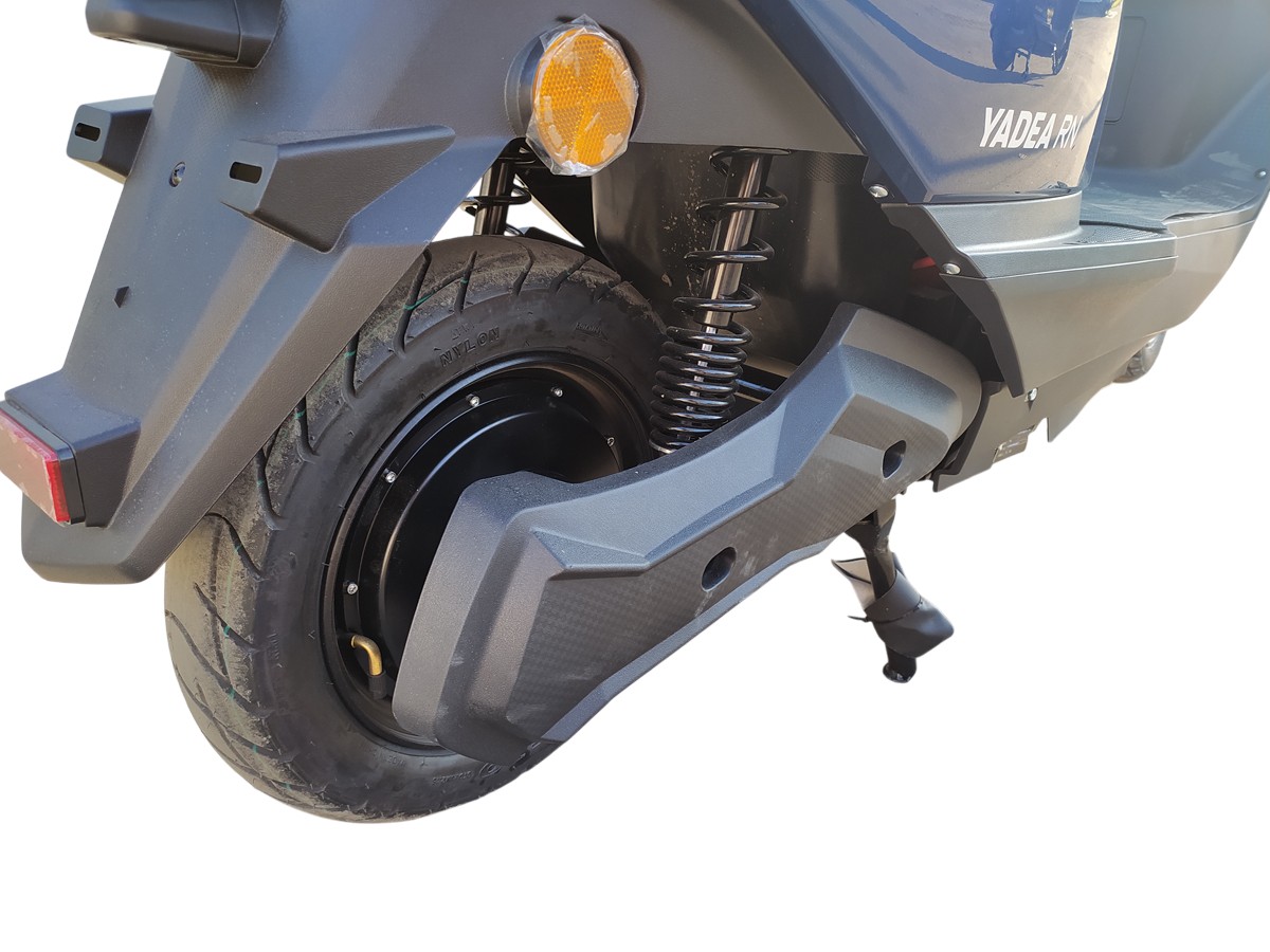 Yadea RN - отличный электрический скутер. Пробег на одной зарядке составляет 60 км. Скутер имеет 3 режима мощности мотора, и 2 режима ограничения максимальной скорости. В качестве батарей используются 6 штук свинцово-кислотных батарей, в комплекте установлены фирменные батареи YADEA. Мощный мотор обеспечивает высокий крутящий момент, максимальная скорость в режиме по умолчанию - до 25 км/ч, в режиме "спорт" - до 45 км/ч. Заряжается от обычной розетки 220В, зарядное устройство в комплекте. По сравнению с обычными скутерами с двигателем внутреннего сгорания, электрический скутер YADEA не потребляет бензин, не имеет двигателя на сжигаемом топливе, то есть не имеет вибраций, шума и выхлопа, а также сложной трансмиссии - вариатора, и многих деталей, присутствующих в обычных скутерах.