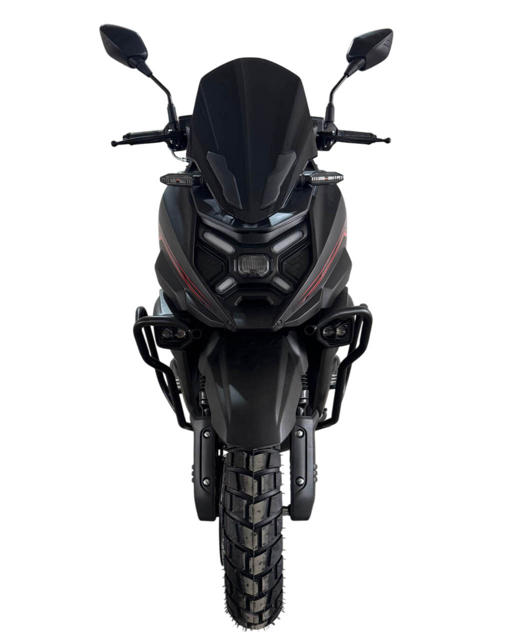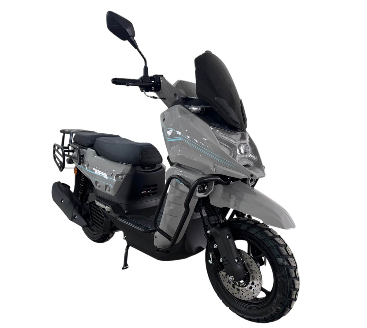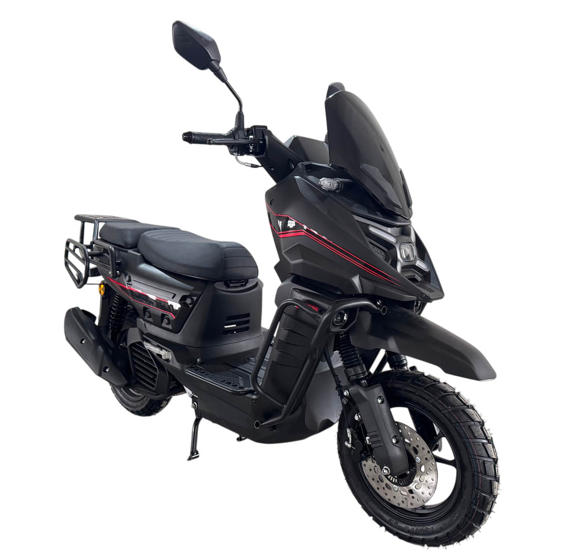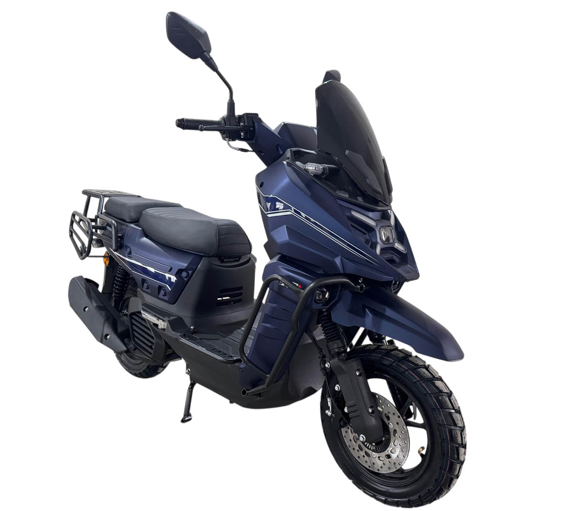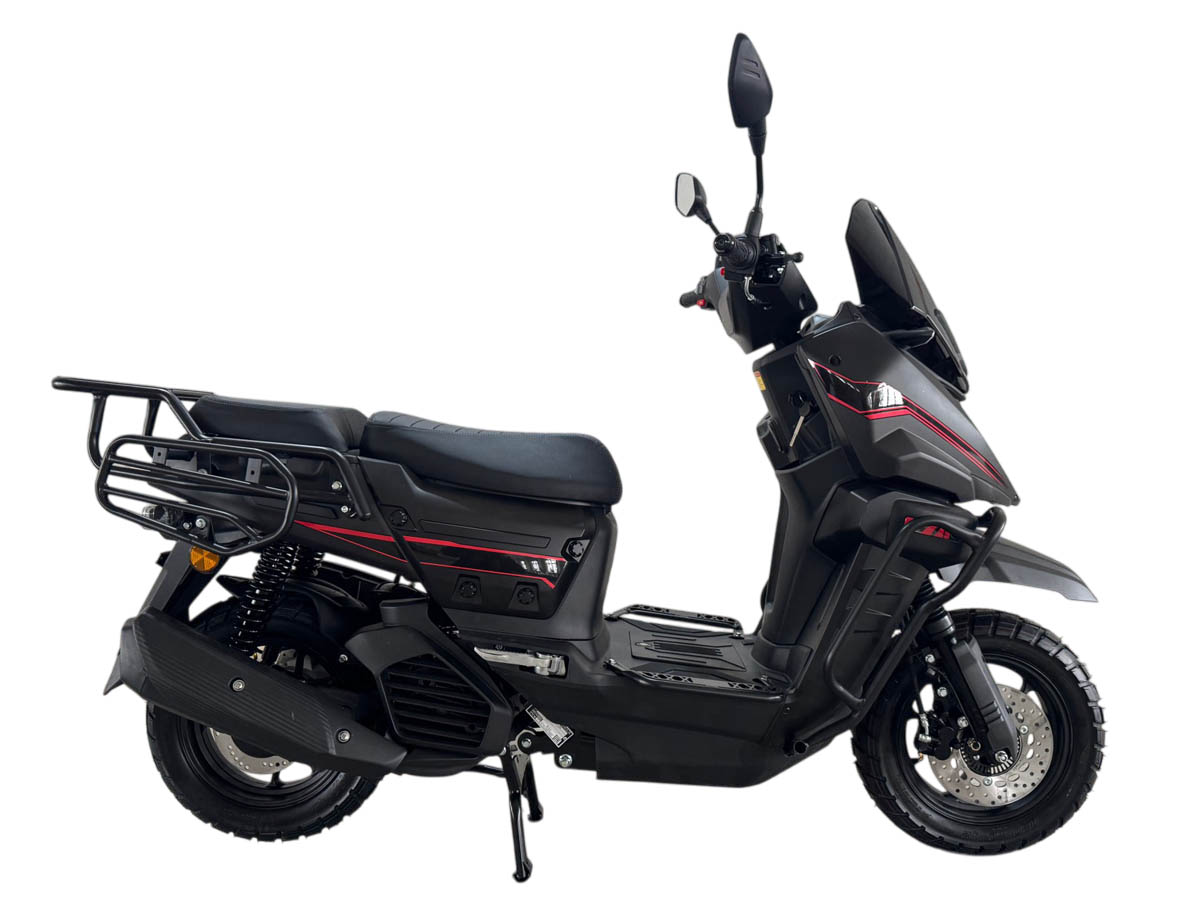 Скутер Iskra X является одной из наиболее новых моделей и отличительной чертой этой модели являются Х-образные светодиодные огни, напоминающие головную оптику знаменитого мотоцикла BMW GS 1300.Это среднеразмерный скутер на колесах 12 дюймов, а не на колесах 10 дюймов, как другие более маленькие скутеры, поэтому этот скутер подходит людям, в том числе и ростом повыше. Iskra X оснащен современной начинкой, у этого скутера цветная светодиодная панель приборов и развитый багажный обвес, есть как места для крепления боковых задних кофров, так и центрального заднего кофра. Также у этого скутера есть дополнительные бамперы, для того чтобы при падениях у него не повреждался пластик. Передний и задний тормоза являются дисковыми гидравлическими, а также спереди установлены фары дополнительного света, боковые подножки (расширители полика) являются бамперами, предохраняющими пластик от повреждений.