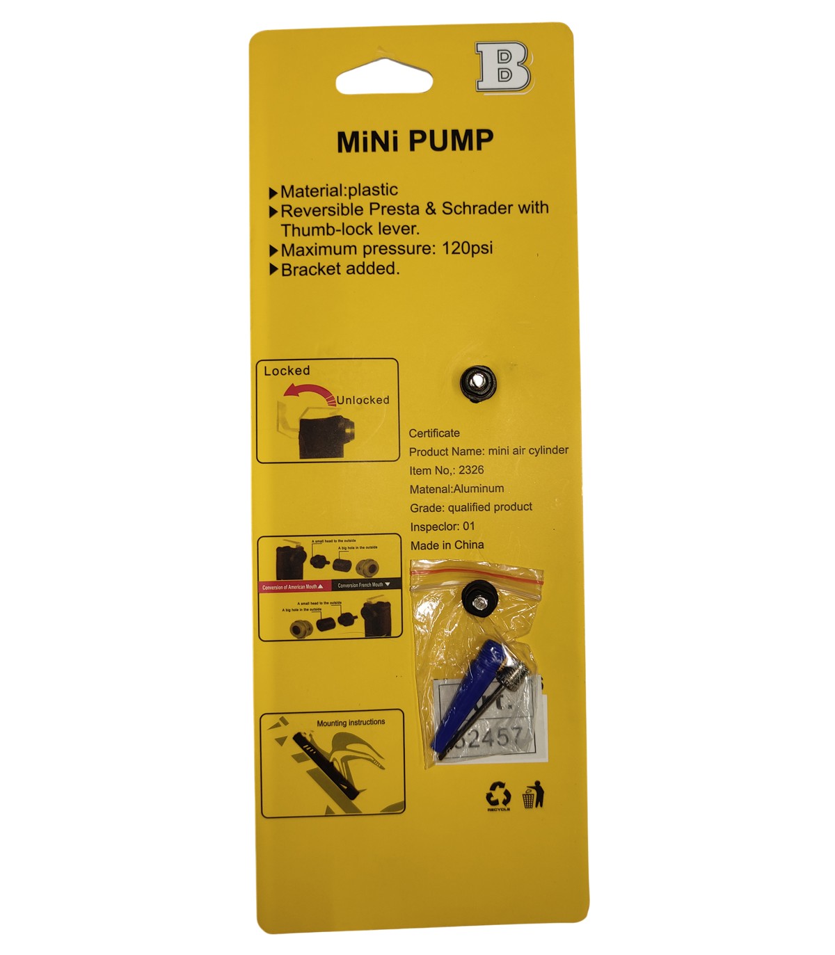 Насос BM-2523 (BOMB) вело с адаптером Presta и Schrader, маск.давление 120 psi/8 bar в интернет-магазине moto18.ru